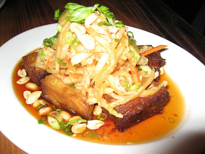 And did I tell you about the pork belly? And I almost had to fault my server for not even touching upon it while we were ordering. Later on, he did mention that critics and others have raved about the pork belly. He kept trying to push other appetizers. But the pork belly with kimchi, this easy combination, just screamed at me, more so than the loco moco. When it came, inside I knew I would be comparing this to Japanese Izakaya style pork belly. This dish excelled and exceeded with its crunchy fat. The fat on the pork belly also melted in your mouth with eat bite, and yet stayed crunchy as well. I think, “this is the best pork belly that I have ever tasted, Period.”