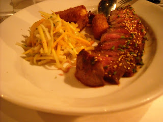 My comments about the appetizers are ok … but better than a regular “meh” I did like the braised beef spring rolls. I thought there were tasty for beef. (yes, I know I shouldn’t eat beef – but it was good). The chicken skewers were unappealing – but not bad and not dry. I guess things stand out more if they are exceptional and very bad. Again, the chicken was decent but nothing to write home about. I don’t remember the tunapica at all. But after looking at the pictures, I remember it was light and airy since it was on a crisp.