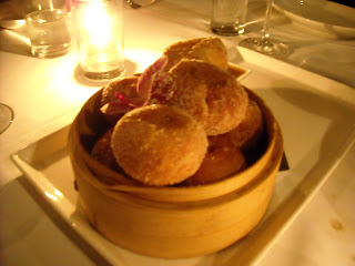 Now for the highlight of the meal – the Mexican Donut. I don’t know it is, but when I am at a high brow restaurant, I like to order the dishes that are homestyled comfort foods. For instance, I like to order mac’n cheese or hamburgers at a Beverly Hills restaurant – such as Maestro’s. So, at Asia de Cuba, the Mexican Donut stood out on the menu. I knew we had to get it. When it arrived in the bowl, there were seven pieces for 6 of us. Hmm… inside, I knew we were all thinking who would get the last one. I know I didn’t want to look directly at it, as did my friends at the table. But I knew whoever piped up first, wanted it more. And thus, my boisterous friend did …