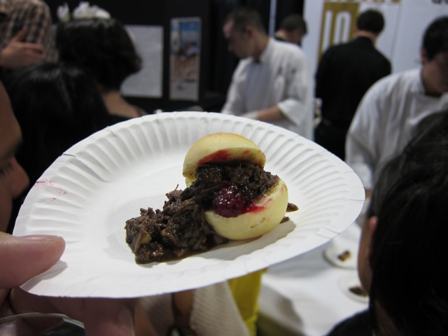 Rabbit slider from Bistro LQ. Tasted a bit gamey … more than I would have liked. But I commend them on serving such a daring meat. Mr. J Gold considers this place to be the center of odd French foods in LA. I might try this place. bistrolq.com