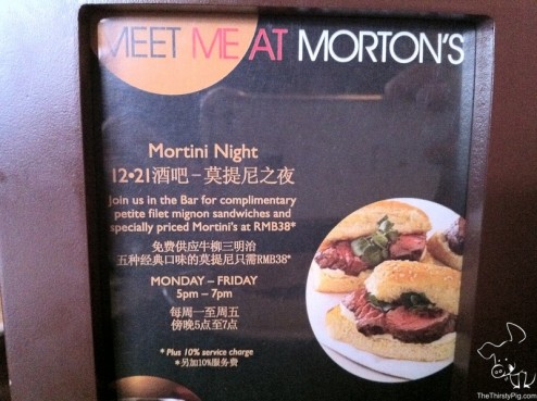 Morton’s Happy Hour is one of the best in Shanghai - with Martini’s and petite filet mignon steak sandwiches.