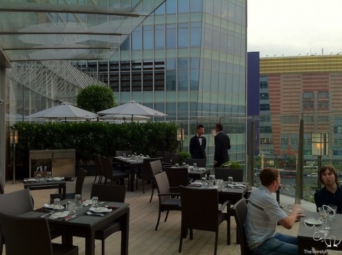 Happy hour, from Monday to Friday, lasts only from 5pm till 7pm. I also strongly suggest that you get there early to get a nice spot on the outdoor balcony. Though their indoor bar stool seating area is fine, the outdoor views of the Shanghai Pearl Tower, with the sun going down, makes for a great happy hour.